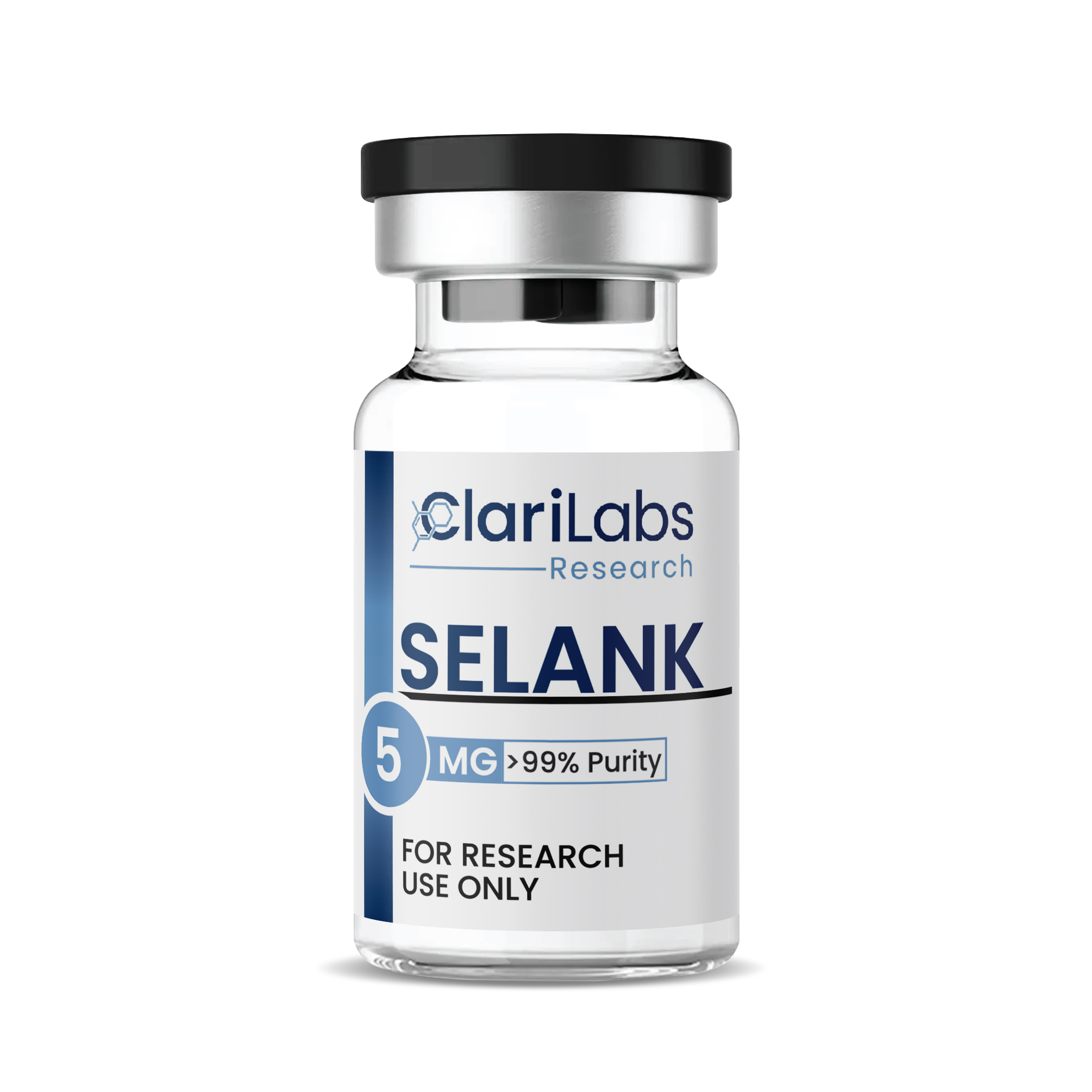 Selank is a synthetic heptapeptide (Thr-Lys-Pro-Arg-Pro-Gly-Pro) derived from the endogenous immunomodulatory peptide tuftsin. In research, Selank is studied for its anxiolytic, nootropic, and neuroprotective properties. Unlike traditional anxiolytics, Selank does not cause sedation or dependence, making it of interest in studies of anxiety regulation, mood stabilization, and cognitive support. It has also been investigated for its role in modulating the immune system and regulating brain-derived neurotrophic factor (BDNF).